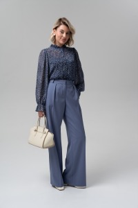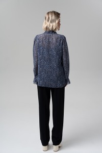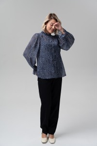 Блузка прямого покроя из крэш-шифона - незаменима для динамичного casual-look или элегантного делового комплекта. Минималистический принт в сочетании с изящным рюшем подчеркнет женственность и без всяких сомнений сделает ваш образ эффектным и незабываемым. Широкий втачной рукав полной длины с воланом. Застежка на петли и пуговицы. В комплекте топ из трикотажной вискозы на тонких регулируемых бретелях.