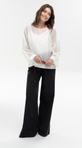 Свободная укороченная блуза с акцентом на воздушность и легкость лиоцелла - станет основой множества летних образов на каждый день. Свободные рукава полной длины имеют широкую подгибку, что позволяет завернуть их на мягкую манжету.