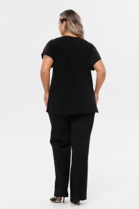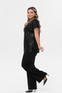 Блуза из комбинированной ткани в черном цвете. Передняя полочка - пайетки, спина-вискозное полотно.
