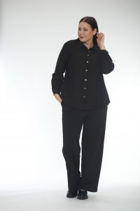 Элегантная черная блуза в классическом стиле – универсальный элемент гардероба для создания сдержанных и стильных образов. Модель выполнена из качественного материала, обеспечивающего комфорт и легкость в носке. Свободный крой позволяет чувствовать себя уверенно в любой ситуации, а длинные рукава и застежка на пуговицы добавляют образу строгости и элегантности. Блуза идеально подходит как для деловых встреч, так и для повседневных выходов. Совет стилиста: сочетайте эту блузу с классическими брюками или юбкой-карандашом для создания строгого делового образа.