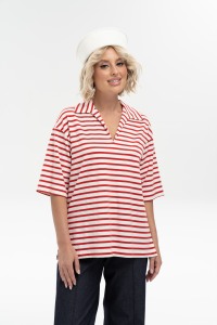Джемпер с воротником "поло" свободного кроя из трикотажной поливискозы - станет отличной альтернативой при создании стильного образа CASUAL. Причиной тому служит идеальная посадка практически на любую фигуру. Рукав короткий. Разрезы в боковых швах позволят разнообразить варианты ношения.