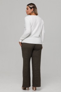 Пуловер представляет собой классическую модель в молочном цвете с V-образным вырезом. Он идеально подходит для создания базового гардероба, благодаря универсальности его оттенка и фасона. Материал мягкий и приятный на ощупь, хорошо садится по фигуре, подчеркивая линии тела. Совет стилиста: этот пуловер можно носить как с классическими брюками, так и с джинсами. Для создания строгого офисного образа его можно комбинировать с юбкой-карандашом и лодочками.