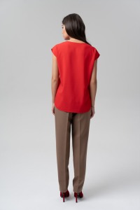 Базовый топ прямого кроя с оригинальной спущенной линией плеча - позволит выглядеть безупречно и отлично впишется как в деловые, так и в повседневные луки в любой цветовой гамме.