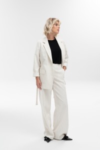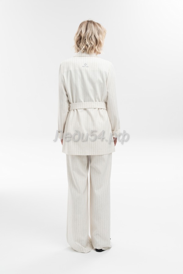Жакет свободного кроя с английским воротником, накладными карманами с клапаном, удлиненной спинкой и глубокими разрезами в боковых швах из костюмного хлопка в полоску - поможет создать стильный и уверенный образ. Рукав втачной полной длины имеет широкую подгибку, что позволяет собрать его или завернуть на мягкую манжету. Жакет дополнен съемным поясом. Застежка на петли и пуговицы.