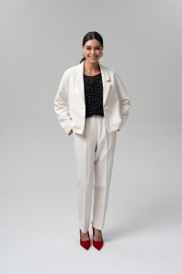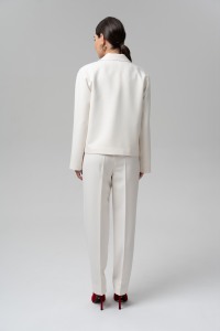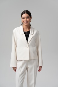Укороченный жакет станет эффектной альтернативой классическому жакету. Фактурная ткань и детальная точность изделия моделируют идеальную посадку по фигуре. Жакет станет ярким акцентом как в повседневном образе, так и в вечернем, а прямой силуэт и английский воротник красивой формы - придадут лаконичности. Рукав полной длины. Акцентная пуговица - примечательная деталь этой модели.