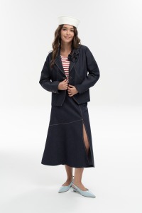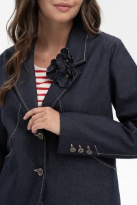 Жакет прямого кроя с английским воротником - сочетает в себе элементы классического и спортивного стиля, создавая при этом ощущение "элегантной свободы". Оригинальные конструкторские линии - создают идеальный силуэт и обеспечивают идеальную посадку. Рукав полной длины. Добавит эксклюзивности съемная брошь ручной работы от OPEN FASHION. Застёжка на петли и пуговицы.