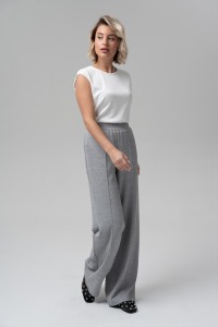 Комфортные широкие брюки из трикотажного полотна - отлично впишутся в повседневные образы. Эластичный пояс не будет стеснять движений: в них будет комфортно в течение всего дня. Посадка по талии и имитация стрелки на передней половинке брюк визуально удлиняют силуэт.