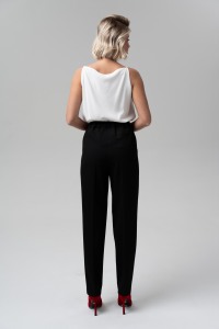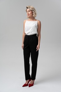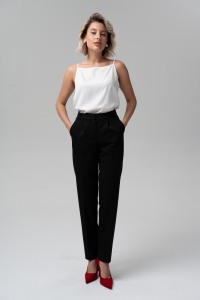 Свободная форма новых брюк никого не оставит равнодушным. Брюки зауженного к низу кроя и с защипами по линии талии из костюмной поливискозы - станут базой делового гардероба. Брюки с карманами, с удобной посадкой на талии и на притачном поясе-кокетке на эластичной тесьме по задней половинке брюк, застегивающиеся на крючок.