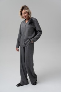 Комфортные широкие брюки из трикотажного полотна - отлично впишутся в повседневные образы. Эластичный пояс не будет стеснять движений: в них будет комфортно в течение всего дня. Посадка по талии и имитация стрелки на передней половинке брюк визуально удлиняют силуэт.