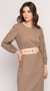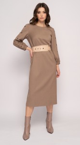 Платье полуприлегающего силуэта из костюмной поливискозы великолепным образом дополнит сезонный гардероб каждой женщины. Комфортный выбор на каждый день! Оригинальный втачной рукав на кнопках полной длины на широкой резине по низу. Потайная молния в среднем шве спинки. При желании линию талии можно подчеркнуть съемным ремнем из эко-кожи.