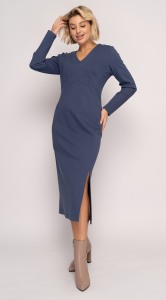Платье прилегающего силуэта из трикотажного полотна с V-образным вырезом- с легкостью может стать фаворитом базового сезонного гардероба. Тонкая проработка деталей создают индивидуальность, подчеркивая ваш исключительный вкус! V-образный вырез визуально вытягивает силуэт, делая его стройнее. Рукав втачной полной длины. Потайная молния в среднем шве спинки.