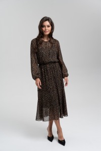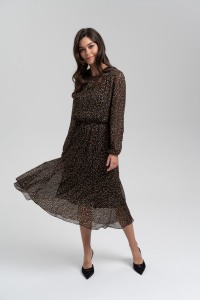 Платье полуприлегающего силуэта из невесомого креп-шифона с эффектом "крэш" - завораживает с первого взгляда, подчеркивает романтичность и хрупкость своей обладательницы. Резинка на талии и съемный ремень из экокожи на кнопках сформирует идеальный женственный силуэт песочных часов. Втачной рукав полной длины на эластичной резине. Платье дополнено комбинацией из трикотажной вискозы на тонких регулируемых бретелях. Застежка по спинке на одну пуговицу и навесную петлю.