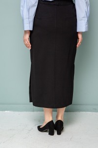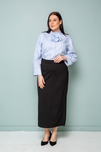 Классическая черная юбка-макси прямого кроя. Особенности: высокая посадка, эластичный пояс, боковой разрез. Достоинства: удлиняет силуэт, скрывает недостатки фигуры, комфортна в носке. Совет стилиста: сочетайте с облегающими топами для элегантного образа. Комбинируйте с объемным свитером для повседневного образа, можно дополнить блузкой.