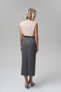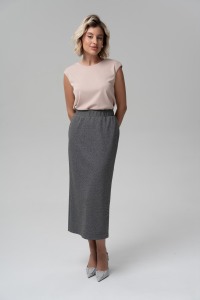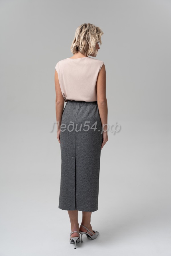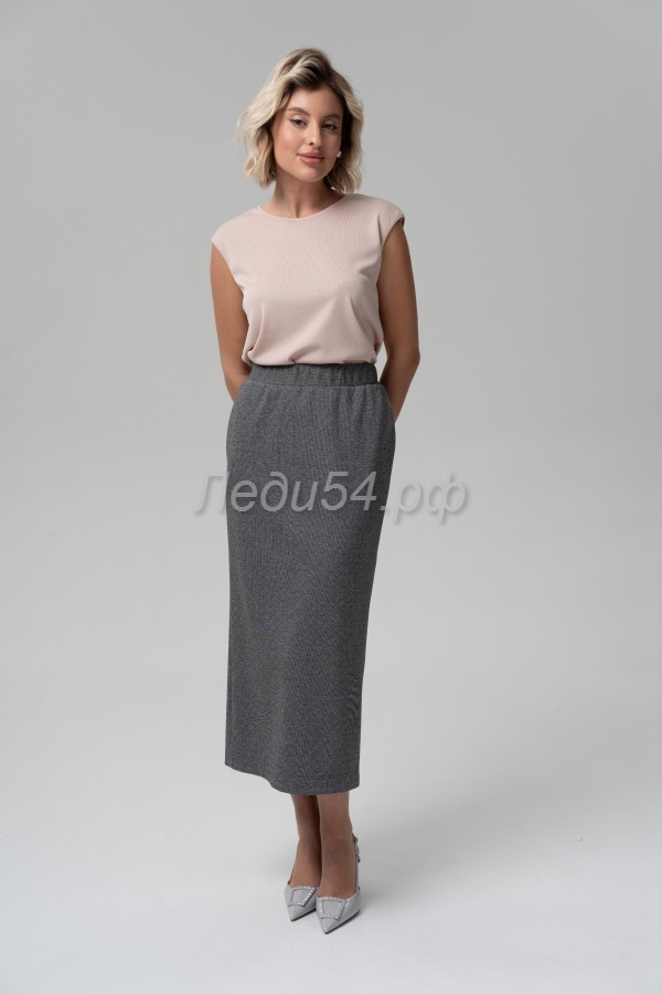 Прямая юбка-карандаш длиной midi с классической шлицей по задней половинке и на притачной поясе с резиной из трикотажного полотна - незаменимый элемент сезонного гардероба. Юбка на подкладе.