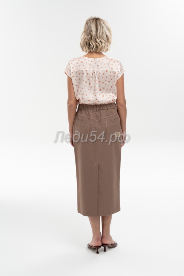 Прямая юбка длиной midi с классической шлицей по переду и спинке, карманами из облегченного денима - сможет с легкостью стать стильной альтернативой для привычного образа CASUAL. Притачной пояс со шлевками и эластичной вставкой по задней половинке. Застежка на молнию и пуговицу-болт по переду.