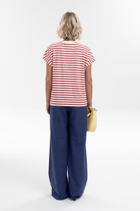 Яркая блуза прямого силуэта со спущенной линией плеча из трикотажной поливискозы в полоску - простой способ добавить актуальный акцент в образ. Комфортная модель разбавит повседневный гардероб и обеспечит не сковывающую движения посадку. V-образный вырез горловины добавит женственности и романтичности.