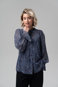 Блузка прямого покроя из крэш-шифона - незаменима для динамичного casual-look или элегантного делового комплекта. Минималистический принт в сочетании с изящным рюшем подчеркнет женственность и без всяких сомнений сделает ваш образ эффектным и незабываемым. Широкий втачной рукав полной длины с воланом. Застежка на петли и пуговицы. В комплекте топ из трикотажной вискозы на тонких регулируемых бретелях.