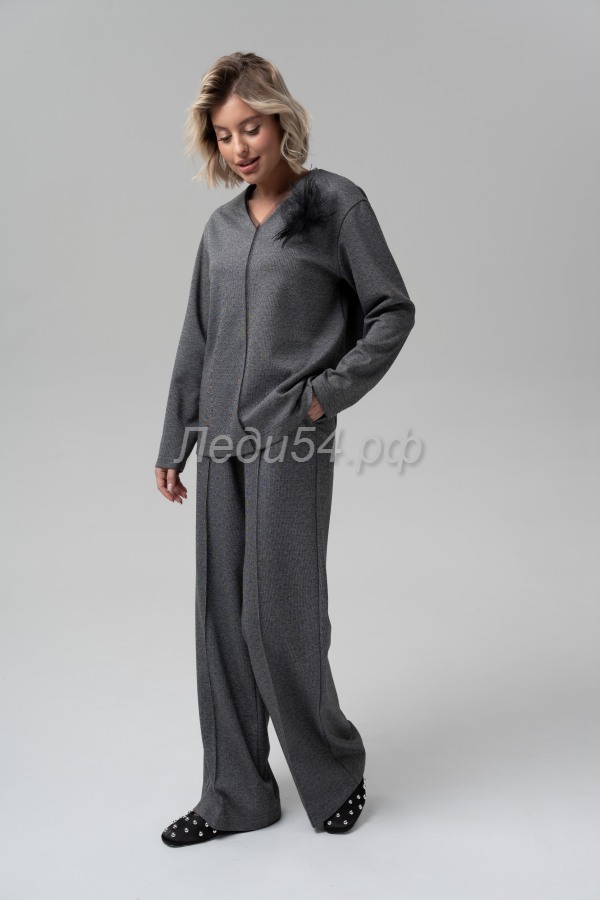 Блуза полуприлегающего кроя из трикотажного полотна - истинный образец элегантности и безупречного вкуса. V-образный вырез в сочетании с деликатной отделкой из сетки - визуально вытягивает силуэт, делая его стройнее. Рукав полной длины. Оригинальная брошь ручной работы добавит хорошего настроения.