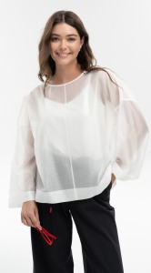 Свободная укороченная блуза с акцентом на воздушность и легкость лиоцелла - станет основой множества летних образов на каждый день. Свободные рукава полной длины имеют широкую подгибку, что позволяет завернуть их на мягкую манжету.