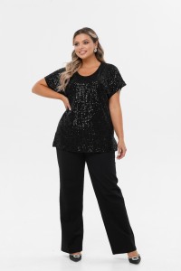 Блуза из комбинированной ткани в черном цвете. Передняя полочка - пайетки, спина-вискозное полотно.