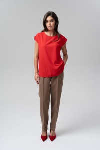 Базовый топ прямого кроя с оригинальной спущенной линией плеча - позволит выглядеть безупречно и отлично впишется как в деловые, так и в повседневные луки в любой цветовой гамме.