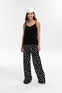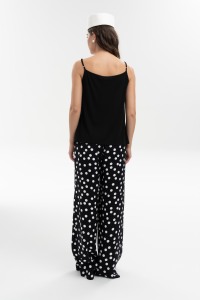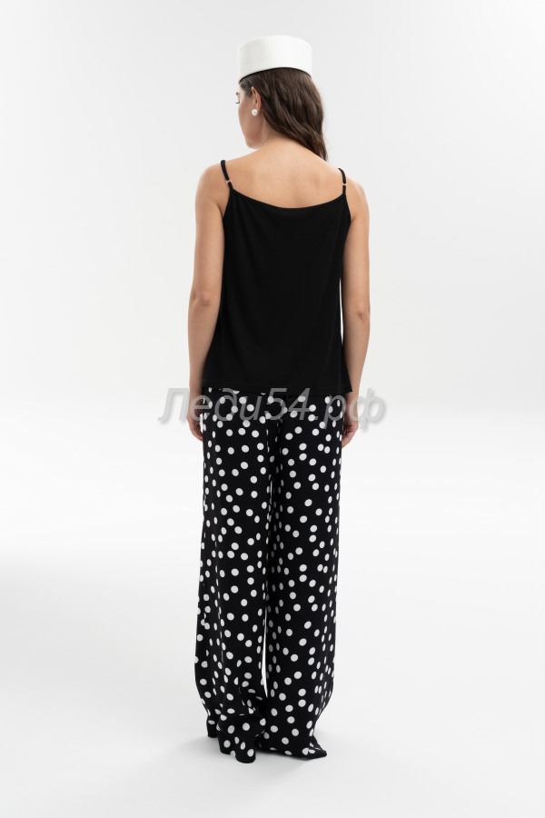 Топ полуприлегающего силуэта из трикотажной поливискозы – невероятно женственный предмет гардероба, который мгновенно делает образ соблазнительным: модель на тонких бретелях изящно открывает плечи и спину. Красивый вырез акцентирует зону декольте и визуально добавляет фигуре стройности.