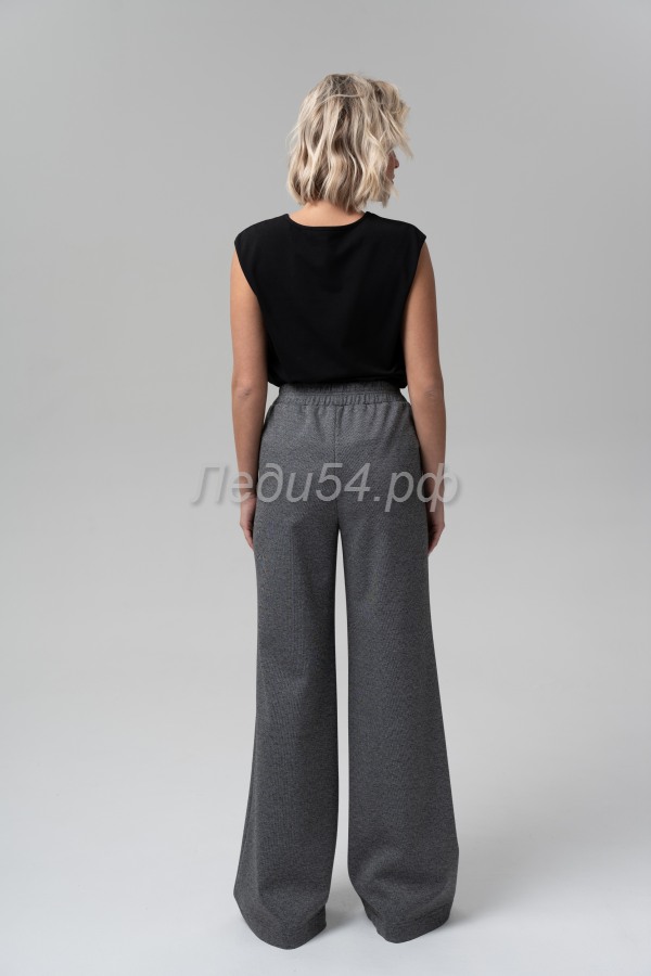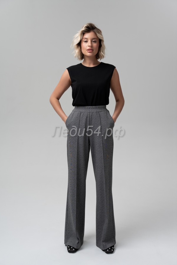Комфортные широкие брюки из трикотажного полотна - отлично впишутся в повседневные образы. Эластичный пояс не будет стеснять движений: в них будет комфортно в течение всего дня. Посадка по талии и имитация стрелки на передней половинке брюк визуально удлиняют силуэт.
