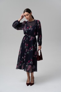 Романтичное и невероятно комфортное платье, отрезное по линии талии с широкой юбкой из шифона с цветочным принтом и бархатными горошинами - станет фаворитом сезонного гардероба. Объемные фантазийные рукава полной длины - без всяких сомнений сделает ваш образ эффектным. Резинка на талии сформирует идеальный женственный силуэт песочных часов. В комплекте съёмный пояс из основной ткани и комбинация из трикотажной вискозы на тонких регулируемых бретелях.