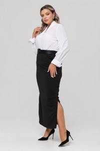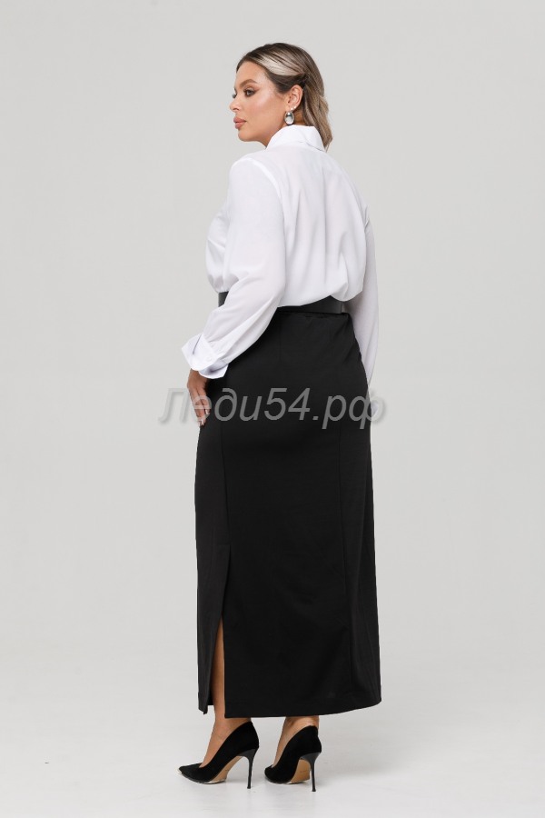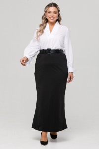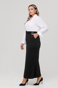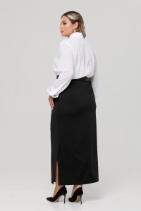 Классическая черная юбка-макси прямого кроя. Особенности: высокая посадка, эластичный пояс, боковой разрез. Достоинства: удлиняет силуэт, скрывает недостатки фигуры, комфортна в носке. Совет стилиста: сочетайте с облегающими топами для элегантного образа. Комбинируйте с объемным свитером для повседневного образа, можно дополнить блузкой.