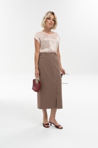 Прямая юбка длиной midi с классической шлицей по переду и спинке, карманами из облегченного денима - сможет с легкостью стать стильной альтернативой для привычного образа CASUAL. Притачной пояс со шлевками и эластичной вставкой по задней половинке. Застежка на молнию и пуговицу-болт по переду.