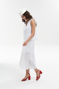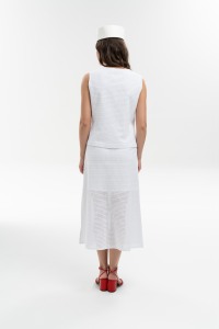 Юбка длиной midi А-силуэта на кокетке из шитья - идеальное решение для жаркого летнего дня в сочетании с топами и блузами из новой коллекции от OPEN FASHION.