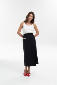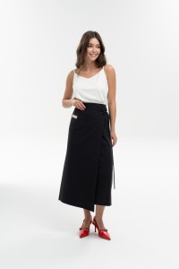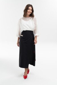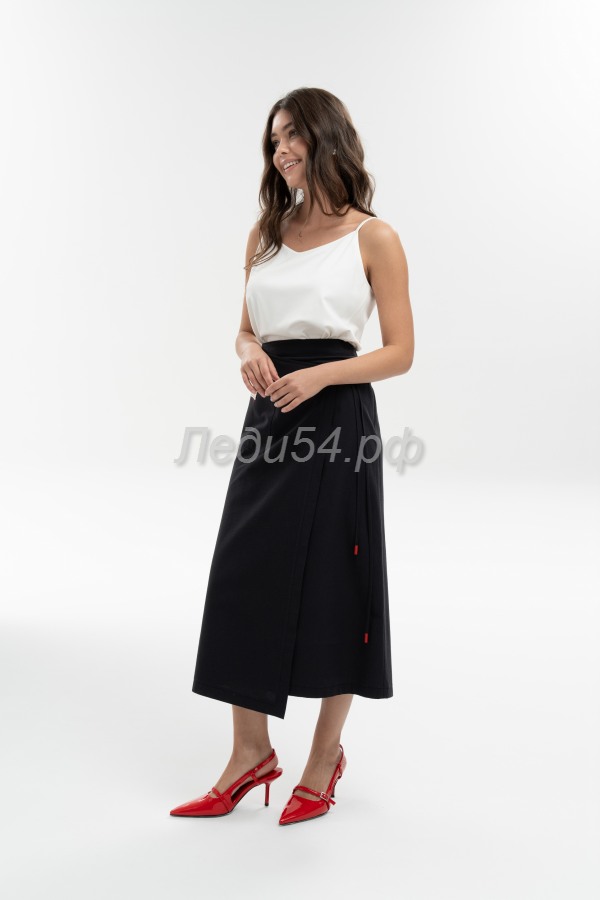 Элегантная модель юбки А-силуэта с имитацией "запАха" не оставит Вас равнодушной. Тонкая проработка деталей в сочетании с контрастной отделкой - подчеркнут женственность и без всяких сомнений сделает ваш образ эффектным. Юбка с удобной посадкой на талии и на притачном поясе с резиной по задней половинке. Потайная молния в среднем шве юбки.